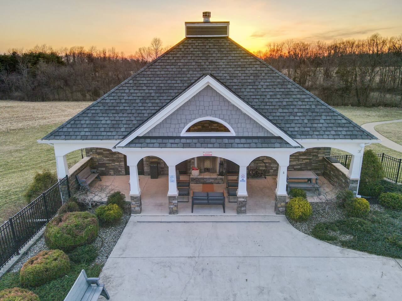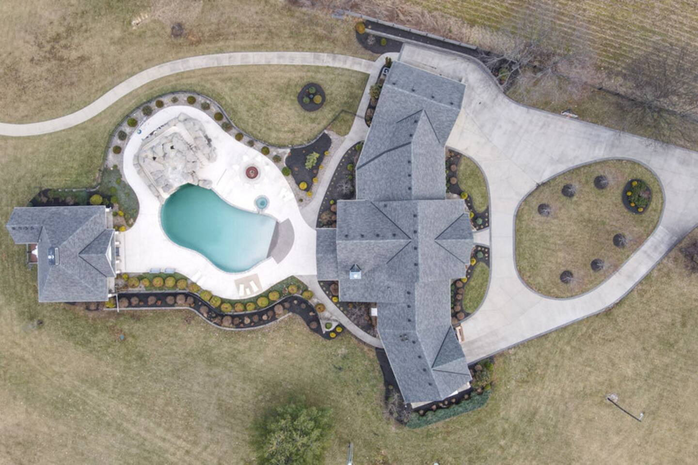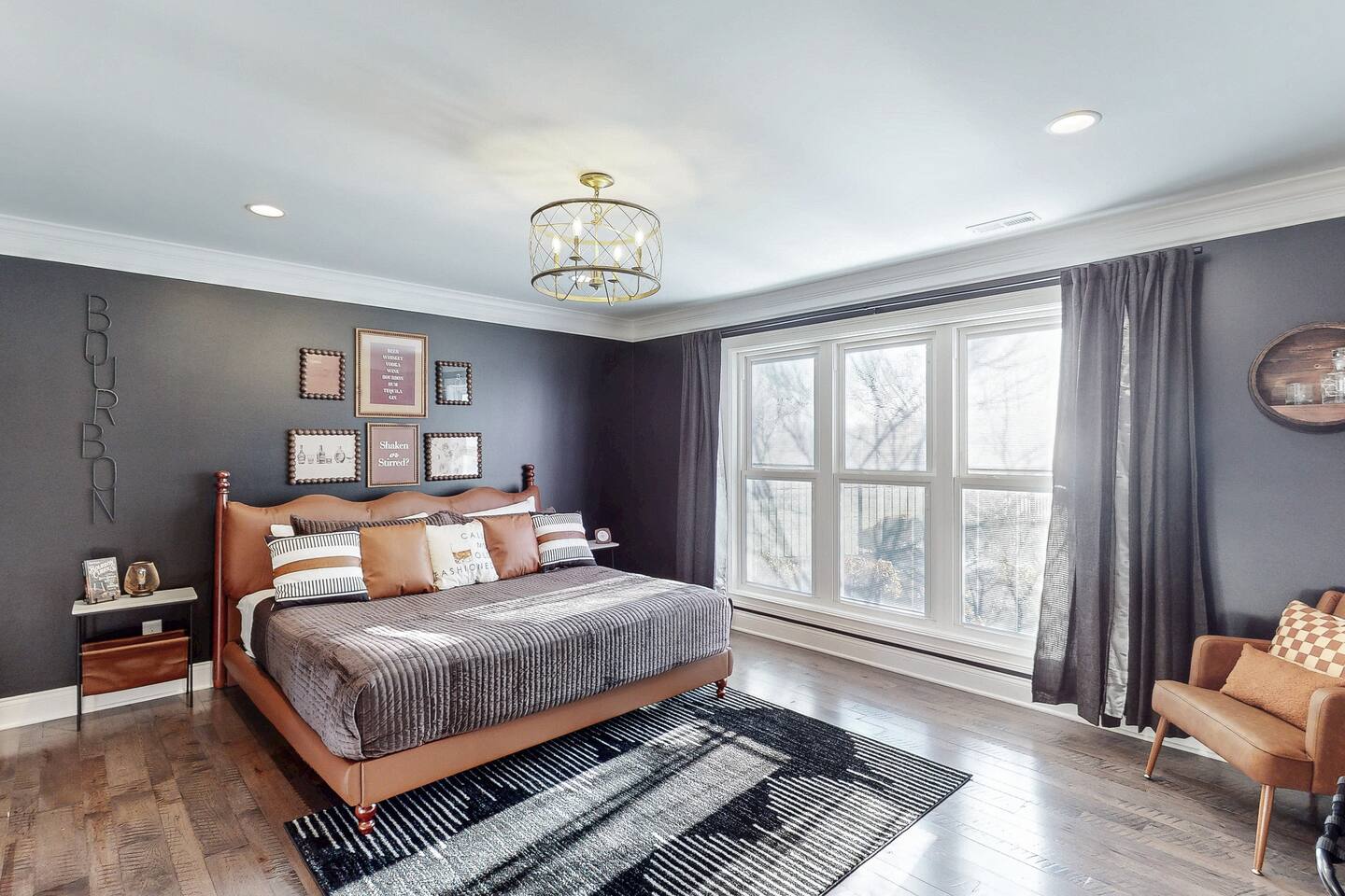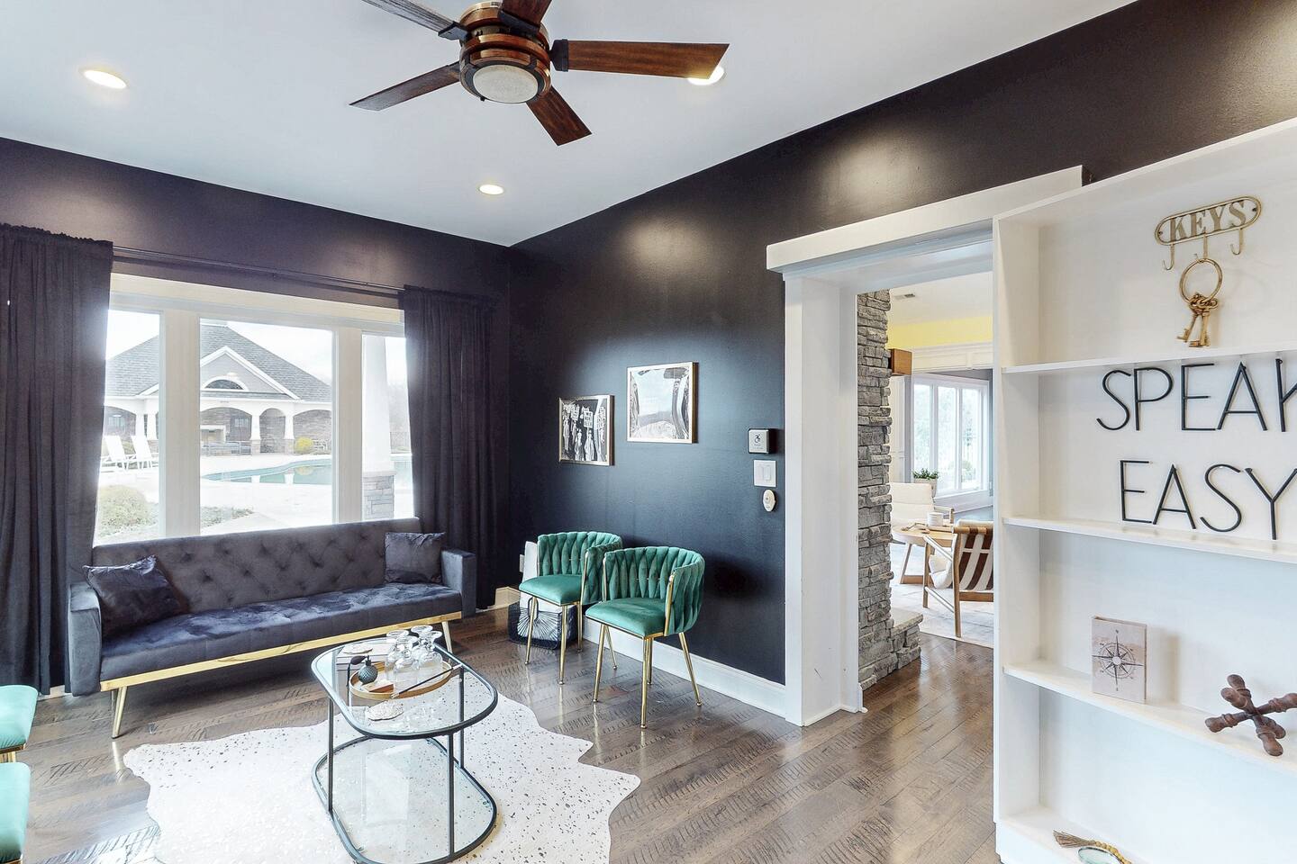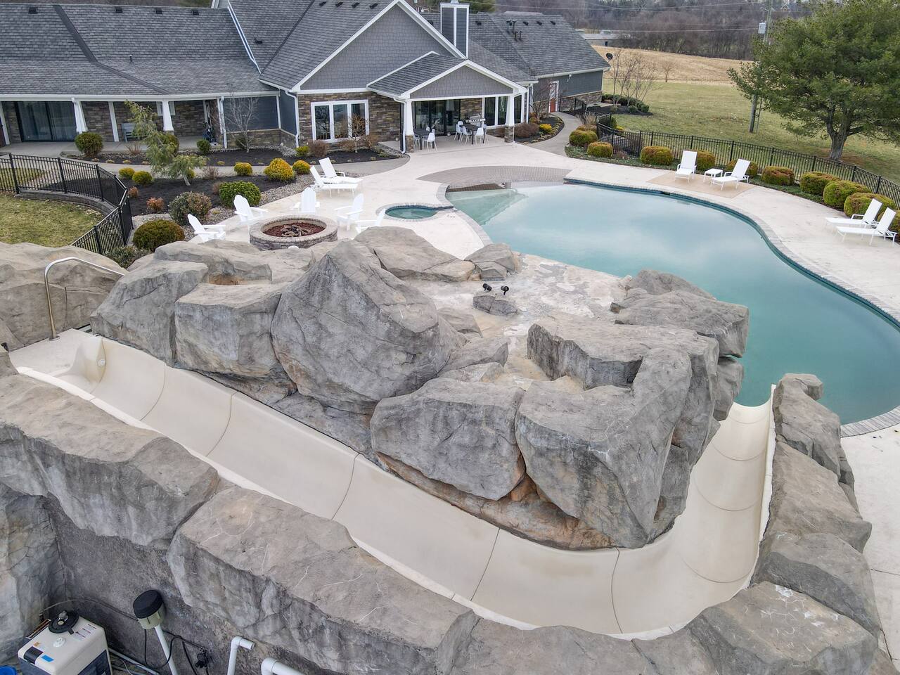 From the moment you arrive, you’ll be surrounded by rolling Bluegrass landscapes, golden sunsets, and the rich aroma of aging bourbon. Whether you’re here to explore historic distilleries, take in the thrill of the racetrack, or simply unwind in an atmosphere of comfort and style, The Bluegrass Grand Estate is your perfect escape into the heart of Kentucky luxury. Step inside through the grand entrance, where you’re immediately welcomed into a bright and inviting foyer. To your right, an elegant dining room awaits—perfect for hosting memorable meals and intimate gatherings. As you continue through the home, you’ll find the open-concept chef’s kitchen, beautifully designed to be both functional and stylish. Sleek countertops, high-end appliances, and ample seating create a space where conversation and cooking flow effortlessly. The fully stocked kitchen includes stainless steel appliances, a refrigerator, coffee maker, blender, toaster, and crockpot, along with all necessary cookware and bakeware. A built-in mini fridge in the second dining room adds extra convenience. Past the kitchen, the home unfolds into the main living area, where plush seating, a large TV, and a cozy sitting room create the perfect ambiance for unwinding after a day of exploring the Bourbon Trail. The estate boasts five beautifully appointed bedrooms, providing ample space for families, friends, and groups to relax in comfort. The Master Suite is a private retreat with a king bed, day bed, additional twin bed, a pack ‘n play, a flat-screen TV, a walk-in closet, and a private laundry room. The en-suite bathroom features a walk-in shower and double sinks. The Kentucky Derby Room is a classic and elegant space with a king bed, luxurious bedding, and a flat-screen TV, conveniently located near the hall bath. The Bluegrass Room offers a warm and inviting setting with a queen bed, a flat-screen TV, and easy access to the hall bath. The Bourbon Room is a sophisticated sanctuary featuring a king bed, private en-suite bathroom with a handicapped-accessible soaking tub, laundry room, and flat-screen TV. Tucked just off the sitting room, the hidden speakeasy offers not only a unique and intimate space to unwind, but also doubles as an additional bedroom thanks to its comfortable futon—ideal for extra guests or a cozy night in. For guests needing to work remotely or stay connected, the estate includes a dedicated office space with a laptop and printer, high-speed Wi-Fi throughout the home, and multiple TVs in all bedrooms and common areas to ensure everyone has their own entertainment space. This estate offers endless entertainment and relaxation options, ensuring every guest experiences a stay like no other. Hidden beyond the fully equipped office space, an entertainment haven awaits, featuring darts, Pop-A-Shot basketball, ping pong, shuffleboard, and classic arcade games, including Big Buck Hunter, Ms. Pac-Man, Galaga, and Golden Tee 3D. Four large TVs make it the ultimate game-day retreat. Tucked away off the sitting room, a hidden speakeasy invites guests to step back in time. With low lighting, rich tones, and plush seating, it’s the perfect spot to enjoy a fine bourbon and great conversation. Step outside into your private backyard paradise, where a shimmering swimming pool with a built-in water slide and cascading waterfall awaits. A luxurious built-in hot tub offers the perfect setting for stargazing. A cozy gas fire pit is surrounded by Adirondack seating for evening gatherings, while an outdoor dining area with a propane grill makes alfresco meals easy and enjoyable. The outdoor area includes a bathroom and dressing room for convenience, as well as a charming outdoor fireplace for cool Kentucky evenings. Ample seating and lounging areas allow guests to fully embrace the outdoor experience. At The Bluegrass Grand Estate, every detail has been thoughtfully curated to create an unforgettable experience. Whether you’re here to explore world-famous distilleries on the Kentucky Bourbon Trail, experience the thrill of horse racing at Churchill Downs, relax in your private poolside retreat, host unforgettable gatherings in a sophisticated setting, enjoy friendly competition in the fully stocked arcade-style game room, or sip bourbon in the speakeasy and indulge in Kentucky’s finest traditions, you’ll find every moment filled with elegance, warmth, and the true spirit of Bluegrass luxury.