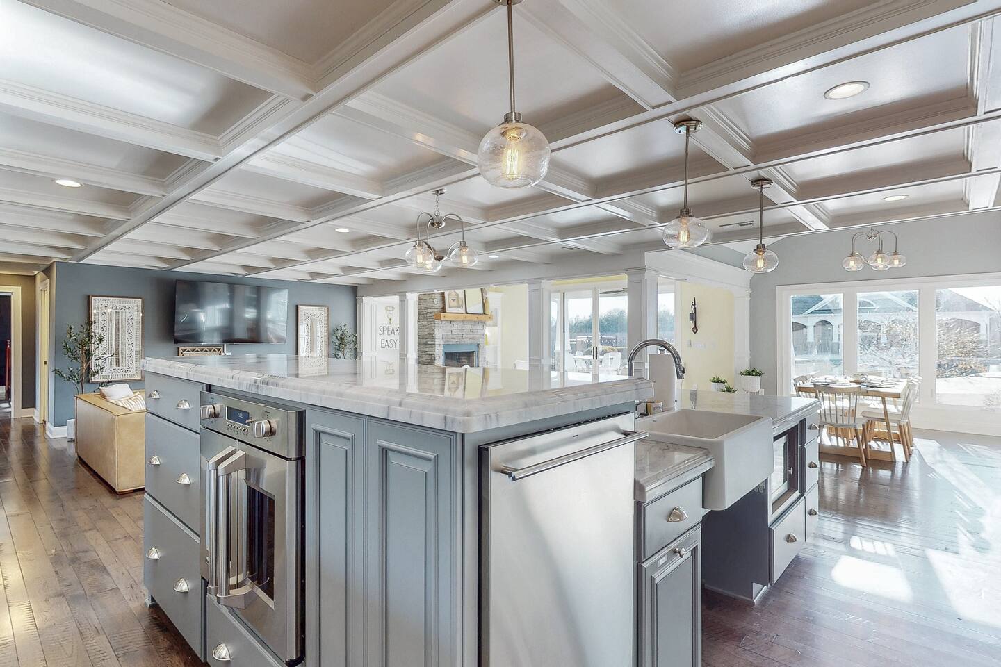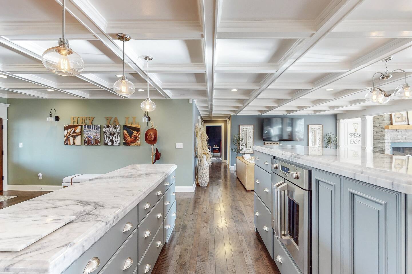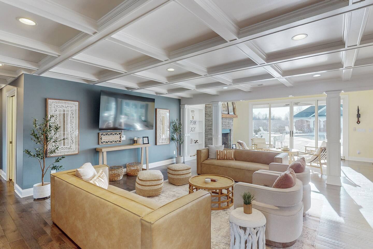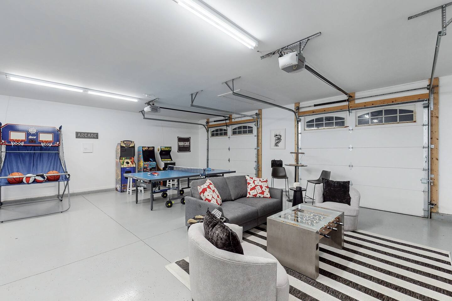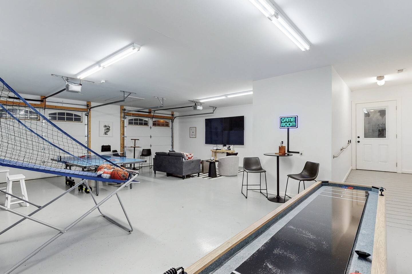 From the moment you arrive, you’ll be surrounded by rolling Bluegrass landscapes, golden sunsets, and the rich aroma of aging bourbon. Whether you’re here to explore historic distilleries, take in the thrill of the racetrack, or simply unwind in an atmosphere of comfort and style, The Bluegrass Grand Estate is your perfect escape into the heart of Kentucky luxury. Step inside through the grand entrance, where you’re immediately welcomed into a bright and inviting foyer. To your right, an elegant dining room awaits—perfect for hosting memorable meals and intimate gatherings. As you continue through the home, you’ll find the open-concept chef’s kitchen, beautifully designed to be both functional and stylish. Sleek countertops, high-end appliances, and ample seating create a space where conversation and cooking flow effortlessly. The fully stocked kitchen includes stainless steel appliances, a refrigerator, coffee maker, blender, toaster, and crockpot, along with all necessary cookware and bakeware. A built-in mini fridge in the second dining room adds extra convenience. Past the kitchen, the home unfolds into the main living area, where plush seating, a large TV, and a cozy sitting room create the perfect ambiance for unwinding after a day of exploring the Bourbon Trail. The estate boasts five beautifully appointed bedrooms, providing ample space for families, friends, and groups to relax in comfort. The Master Suite is a private retreat with a king bed, day bed, additional twin bed, a pack ‘n play, a flat-screen TV, a walk-in closet, and a private laundry room. The en-suite bathroom features a walk-in shower and double sinks. The Kentucky Derby Room is a classic and elegant space with a king bed, luxurious bedding, and a flat-screen TV, conveniently located near the hall bath. The Bluegrass Room offers a warm and inviting setting with a queen bed, a flat-screen TV, and easy access to the hall bath. The Bourbon Room is a sophisticated sanctuary featuring a king bed, private en-suite bathroom with a handicapped-accessible soaking tub, laundry room, and flat-screen TV. Tucked just off the sitting room, the hidden speakeasy offers not only a unique and intimate space to unwind, but also doubles as an additional bedroom thanks to its comfortable futon—ideal for extra guests or a cozy night in. For guests needing to work remotely or stay connected, the estate includes a dedicated office space with a laptop and printer, high-speed Wi-Fi throughout the home, and multiple TVs in all bedrooms and common areas to ensure everyone has their own entertainment space. This estate offers endless entertainment and relaxation options, ensuring every guest experiences a stay like no other. Hidden beyond the fully equipped office space, an entertainment haven awaits, featuring darts, Pop-A-Shot basketball, ping pong, shuffleboard, and classic arcade games, including Big Buck Hunter, Ms. Pac-Man, Galaga, and Golden Tee 3D. Four large TVs make it the ultimate game-day retreat. Tucked away off the sitting room, a hidden speakeasy invites guests to step back in time. With low lighting, rich tones, and plush seating, it’s the perfect spot to enjoy a fine bourbon and great conversation. Step outside into your private backyard paradise, where a shimmering swimming pool with a built-in water slide and cascading waterfall awaits. A luxurious built-in hot tub offers the perfect setting for stargazing. A cozy gas fire pit is surrounded by Adirondack seating for evening gatherings, while an outdoor dining area with a propane grill makes alfresco meals easy and enjoyable. The outdoor area includes a bathroom and dressing room for convenience, as well as a charming outdoor fireplace for cool Kentucky evenings. Ample seating and lounging areas allow guests to fully embrace the outdoor experience. At The Bluegrass Grand Estate, every detail has been thoughtfully curated to create an unforgettable experience. Whether you’re here to explore world-famous distilleries on the Kentucky Bourbon Trail, experience the thrill of horse racing at Churchill Downs, relax in your private poolside retreat, host unforgettable gatherings in a sophisticated setting, enjoy friendly competition in the fully stocked arcade-style game room, or sip bourbon in the speakeasy and indulge in Kentucky’s finest traditions, you’ll find every moment filled with elegance, warmth, and the true spirit of Bluegrass luxury.