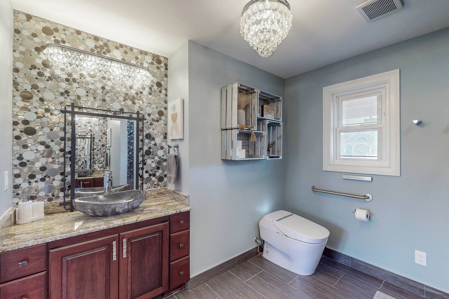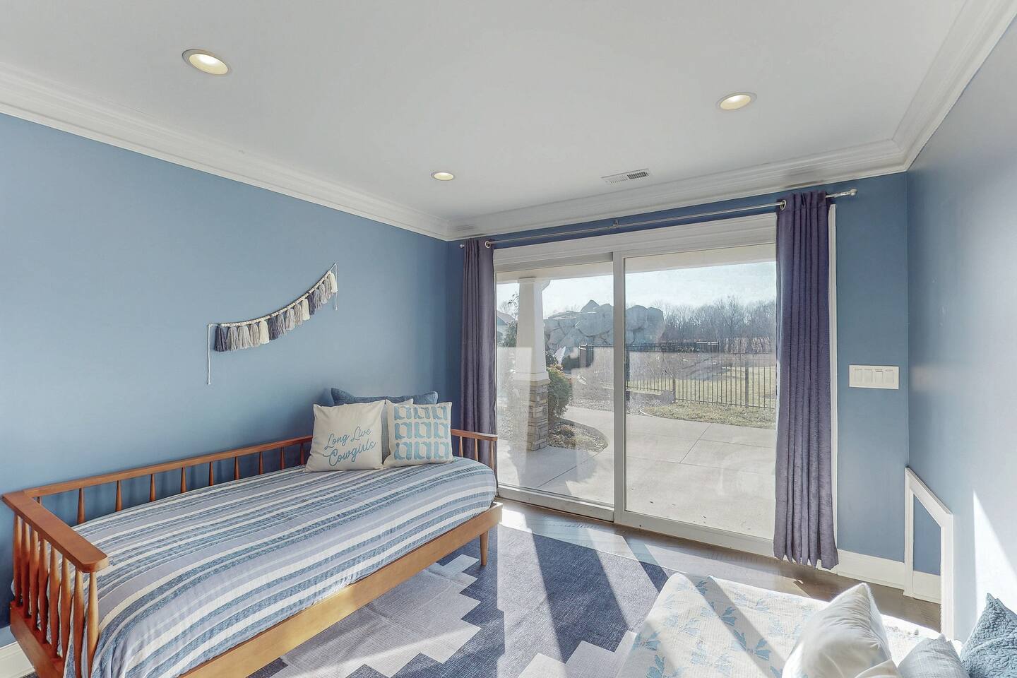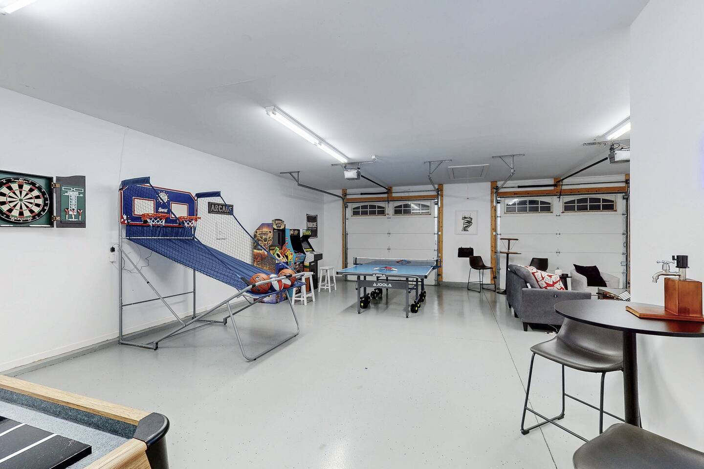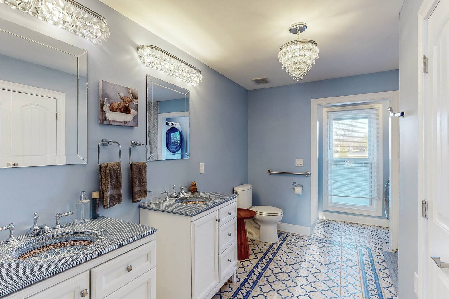 From the moment you arrive, you’ll be surrounded by rolling Bluegrass landscapes, golden sunsets, and the rich aroma of aging bourbon. Whether you’re here to explore historic distilleries, take in the thrill of the racetrack, or simply unwind in an atmosphere of comfort and style, The Bluegrass Grand Estate is your perfect escape into the heart of Kentucky luxury. Step inside through the grand entrance, where you’re immediately welcomed into a bright and inviting foyer. To your right, an elegant dining room awaits—perfect for hosting memorable meals and intimate gatherings. As you continue through the home, you’ll find the open-concept chef’s kitchen, beautifully designed to be both functional and stylish. Sleek countertops, high-end appliances, and ample seating create a space where conversation and cooking flow effortlessly. The fully stocked kitchen includes stainless steel appliances, a refrigerator, coffee maker, blender, toaster, and crockpot, along with all necessary cookware and bakeware. A built-in mini fridge in the second dining room adds extra convenience. Past the kitchen, the home unfolds into the main living area, where plush seating, a large TV, and a cozy sitting room create the perfect ambiance for unwinding after a day of exploring the Bourbon Trail. The estate boasts five beautifully appointed bedrooms, providing ample space for families, friends, and groups to relax in comfort. The Master Suite is a private retreat with a king bed, day bed, additional twin bed, a pack ‘n play, a flat-screen TV, a walk-in closet, and a private laundry room. The en-suite bathroom features a walk-in shower and double sinks. The Kentucky Derby Room is a classic and elegant space with a king bed, luxurious bedding, and a flat-screen TV, conveniently located near the hall bath. The Bluegrass Room offers a warm and inviting setting with a queen bed, a flat-screen TV, and easy access to the hall bath. The Bourbon Room is a sophisticated sanctuary featuring a king bed, private en-suite bathroom with a handicapped-accessible soaking tub, laundry room, and flat-screen TV. Tucked just off the sitting room, the hidden speakeasy offers not only a unique and intimate space to unwind, but also doubles as an additional bedroom thanks to its comfortable futon—ideal for extra guests or a cozy night in. For guests needing to work remotely or stay connected, the estate includes a dedicated office space with a laptop and printer, high-speed Wi-Fi throughout the home, and multiple TVs in all bedrooms and common areas to ensure everyone has their own entertainment space. This estate offers endless entertainment and relaxation options, ensuring every guest experiences a stay like no other. Hidden beyond the fully equipped office space, an entertainment haven awaits, featuring darts, Pop-A-Shot basketball, ping pong, shuffleboard, and classic arcade games, including Big Buck Hunter, Ms. Pac-Man, Galaga, and Golden Tee 3D. Four large TVs make it the ultimate game-day retreat. Tucked away off the sitting room, a hidden speakeasy invites guests to step back in time. With low lighting, rich tones, and plush seating, it’s the perfect spot to enjoy a fine bourbon and great conversation. Step outside into your private backyard paradise, where a shimmering swimming pool with a built-in water slide and cascading waterfall awaits. A luxurious built-in hot tub offers the perfect setting for stargazing. A cozy gas fire pit is surrounded by Adirondack seating for evening gatherings, while an outdoor dining area with a propane grill makes alfresco meals easy and enjoyable. The outdoor area includes a bathroom and dressing room for convenience, as well as a charming outdoor fireplace for cool Kentucky evenings. Ample seating and lounging areas allow guests to fully embrace the outdoor experience. At The Bluegrass Grand Estate, every detail has been thoughtfully curated to create an unforgettable experience. Whether you’re here to explore world-famous distilleries on the Kentucky Bourbon Trail, experience the thrill of horse racing at Churchill Downs, relax in your private poolside retreat, host unforgettable gatherings in a sophisticated setting, enjoy friendly competition in the fully stocked arcade-style game room, or sip bourbon in the speakeasy and indulge in Kentucky’s finest traditions, you’ll find every moment filled with elegance, warmth, and the true spirit of Bluegrass luxury.