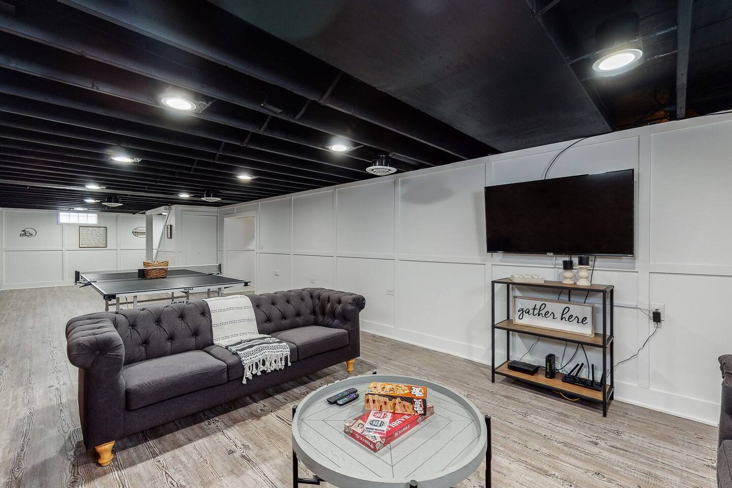 Welcome to your home away from home, where comfort meets sophistication in the heart of Canton. This spacious four-bedroom, two-bathroom retreat, just steps from the Pro Football Hall of Fame, offers over 2,000 square feet of thoughtfully designed living space—perfect for families and groups seeking a warm and inviting getaway. On the main level, you’ll find two serene bedrooms, each with a cozy queen bed, and a third bedroom featuring a twin bed with a trundle—perfect for younger guests or added flexibility. A modern bathroom with premium fixtures ensures comfort for everyone. Downstairs, the private basement bedroom offers a queen bed and an additional contemporary bathroom, creating a perfect retreat for relaxation. Inside, every detail exudes warmth and style. Gather around for board games, a friendly match of ping pong, or movie nights on one of the six high-definition TVs. When it’s time to unwind, the inviting hot tub is ready to melt away the day’s adventures. Step outside to a spacious, fenced backyard, offering privacy for outdoor leisure and gatherings. Beyond the home, Canton’s vibrant attractions await. Take a short walk to the Pro Football Hall of Fame or enjoy an 8-minute drive to the bustling Belden Village area. Nearby, you’ll find golf courses, wineries, breweries, and an array of local dining options to enhance your stay. Whether you’re here to explore the Pro Football Hall of Fame or simply relax, this Canton retreat provides the perfect blend of comfort, convenience, and charm. Book now and make memories in a space designed with you in mind!
