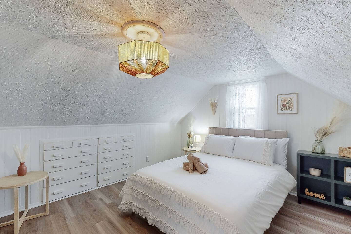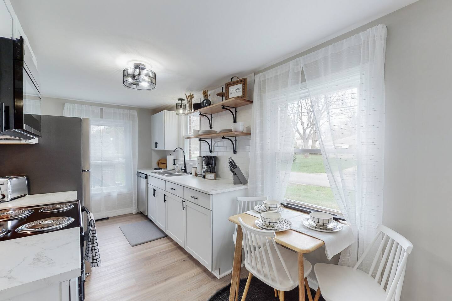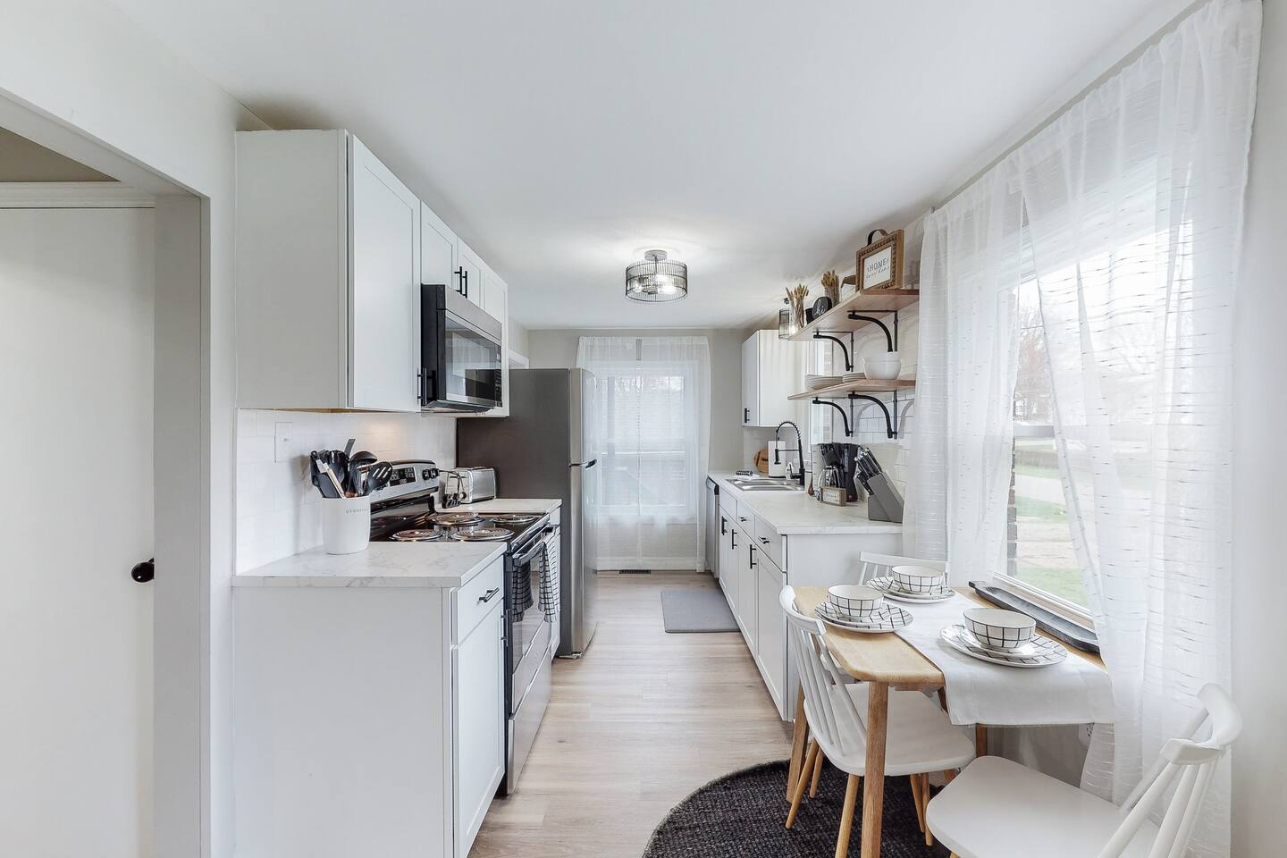 Welcome to Your Cozy Retreat Step inside and feel the warmth of this inviting home, where every corner is designed to make you feel right at home after a day exploring the Hall of Fame Village. At the heart of the home, you’ll find a comfy living room that flows effortlessly into the kitchen and dining area. With sleek granite countertops and top-quality stainless steel appliances, the kitchen is fully stocked to help you prepare your favorite meals, creating the perfect spot for gathering and enjoying time together. Beyond the kitchen, two cozy bedrooms await you. One features a queen bed and a smart TV, while the other has twin beds and another smart TV for added comfort. A modern bathroom, located between the two rooms, offers all the essentials for your convenience. Upstairs, your private sanctuary awaits—an expansive bedroom with a queen bed, smart TV, and a quiet corner for work or relaxation. Plus, there’s ample closet space for all your gear. This charming Canton residence is your perfect home base for making memories with loved ones during your Ohio getaway. Come in, relax, and make yourself at home!