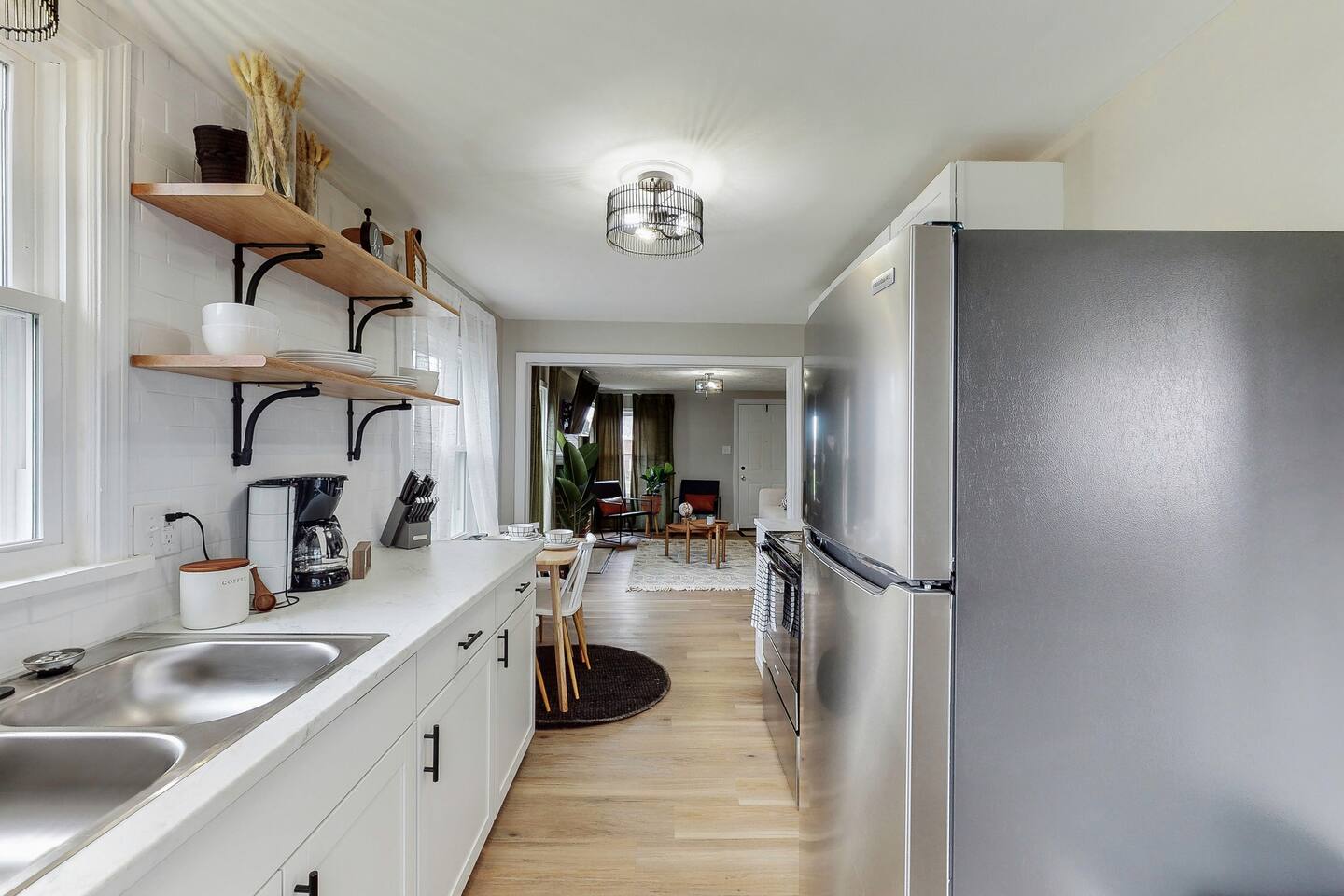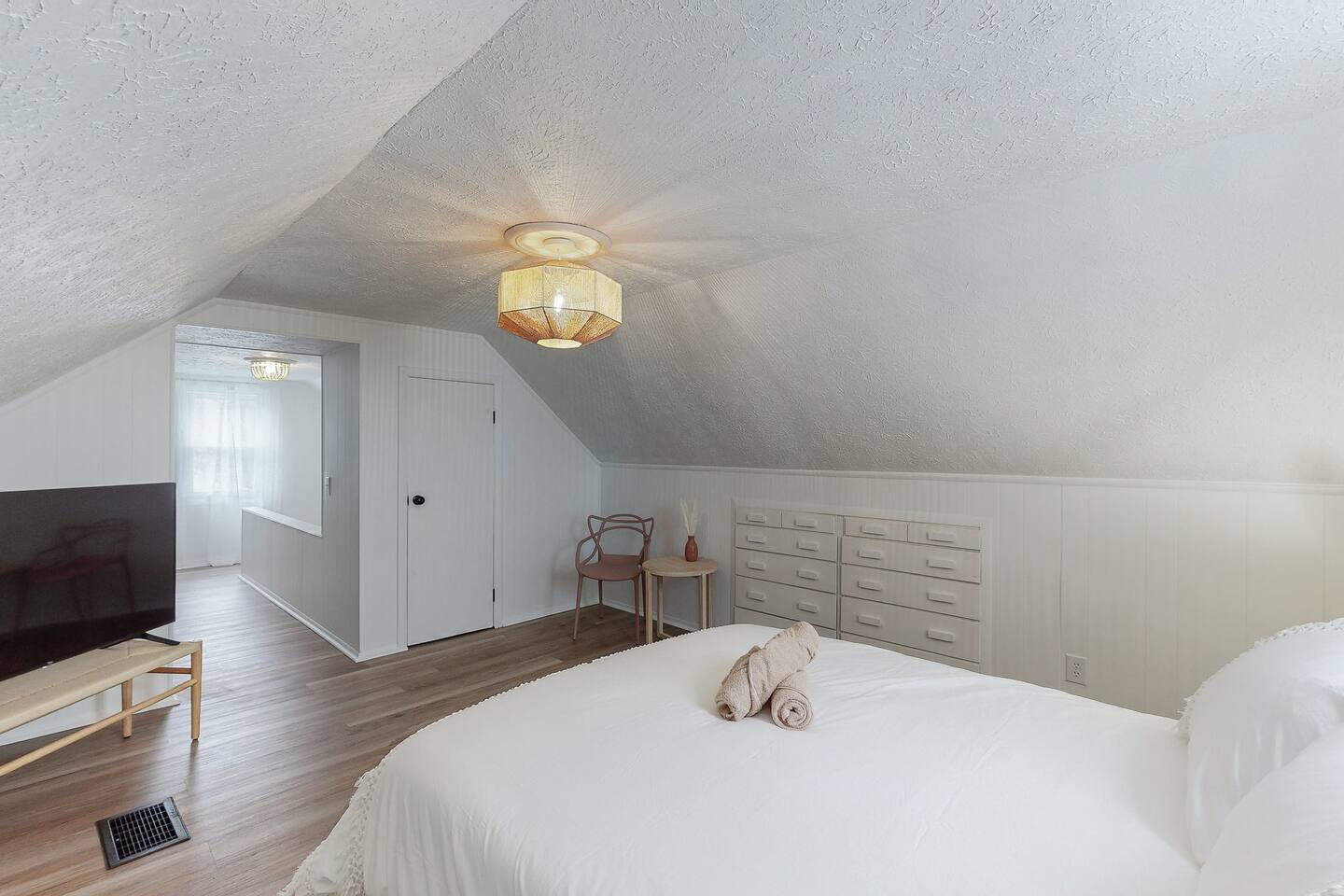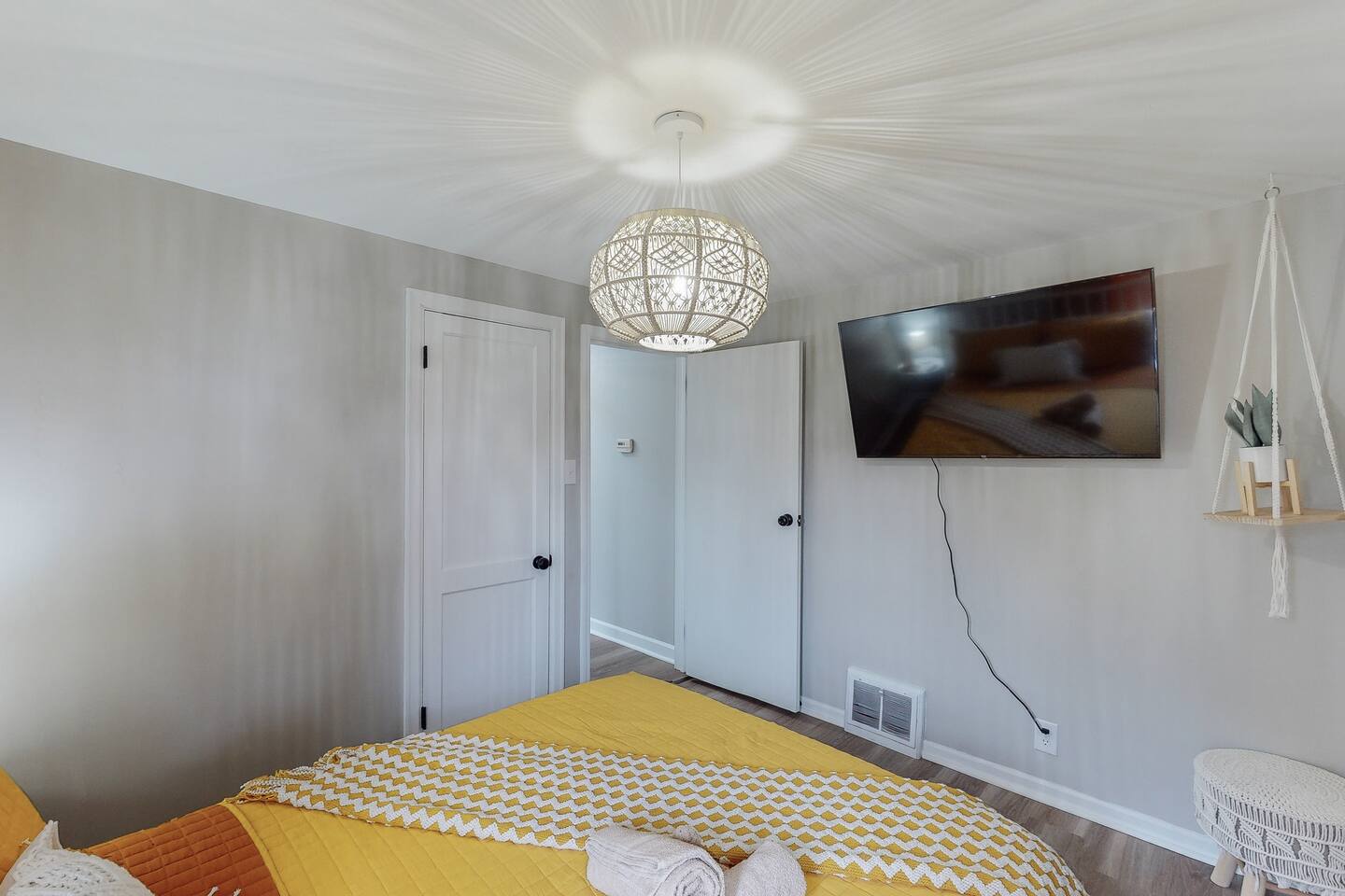Welcome to Your Cozy Retreat Step inside and feel the warmth of this inviting home, where every corner is designed to make you feel right at home after a day exploring the Hall of Fame Village. At the heart of the home, you’ll find a comfy living room that flows effortlessly into the kitchen and dining area. With sleek granite countertops and top-quality stainless steel appliances, the kitchen is fully stocked to help you prepare your favorite meals, creating the perfect spot for gathering and enjoying time together. Beyond the kitchen, two cozy bedrooms await you. One features a queen bed and a smart TV, while the other has twin beds and another smart TV for added comfort. A modern bathroom, located between the two rooms, offers all the essentials for your convenience. Upstairs, your private sanctuary awaits—an expansive bedroom with a queen bed, smart TV, and a quiet corner for work or relaxation. Plus, there’s ample closet space for all your gear. This charming Canton residence is your perfect home base for making memories with loved ones during your Ohio getaway. Come in, relax, and make yourself at home!