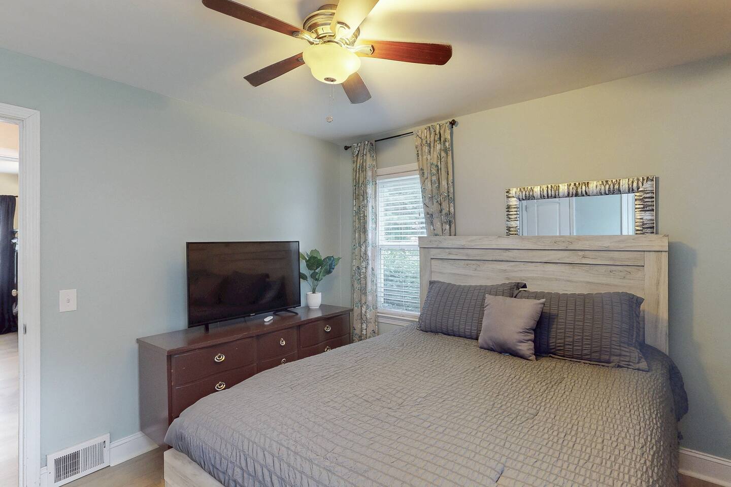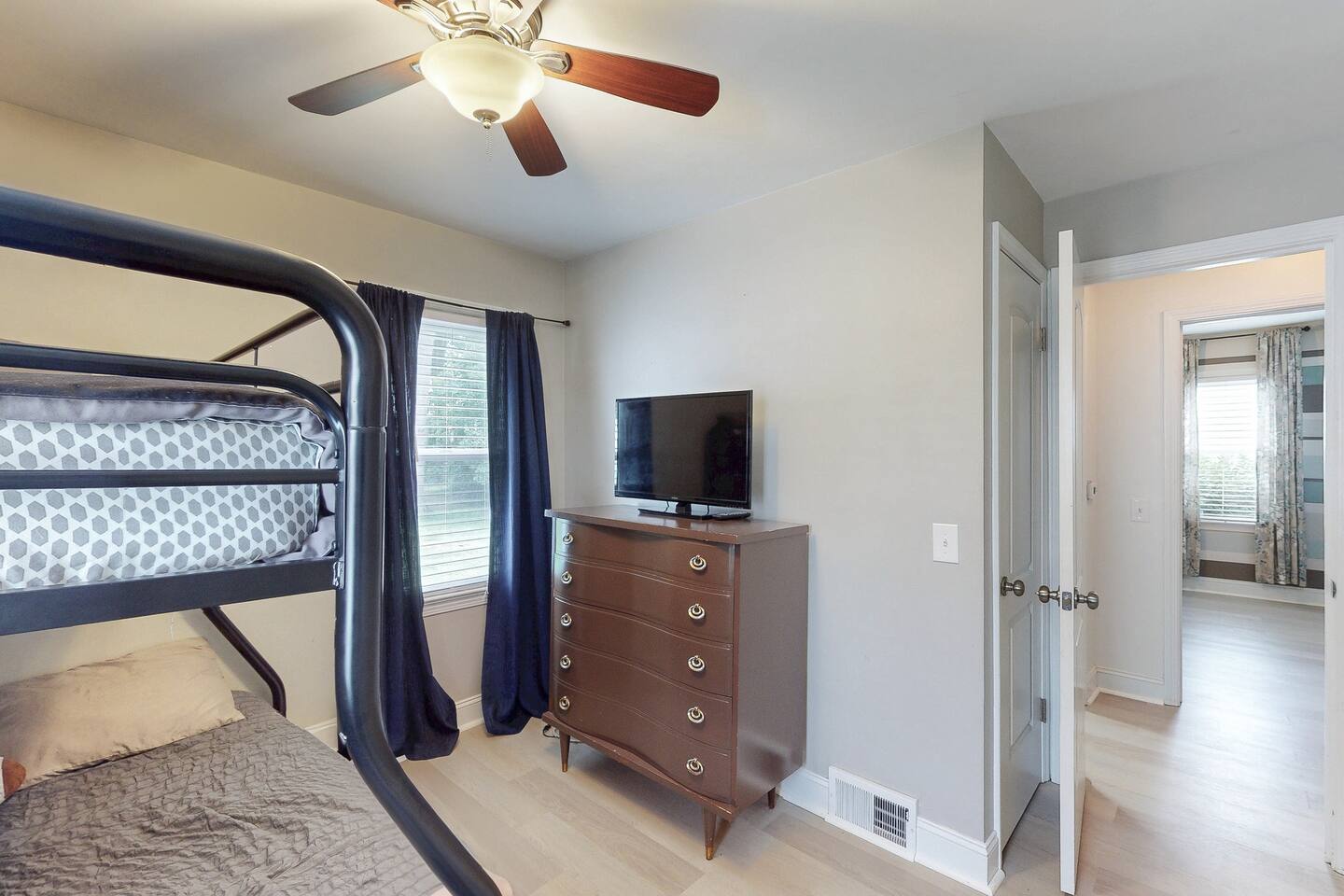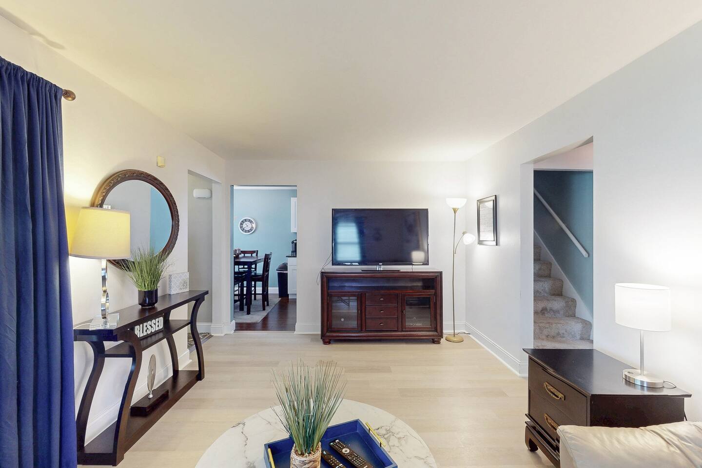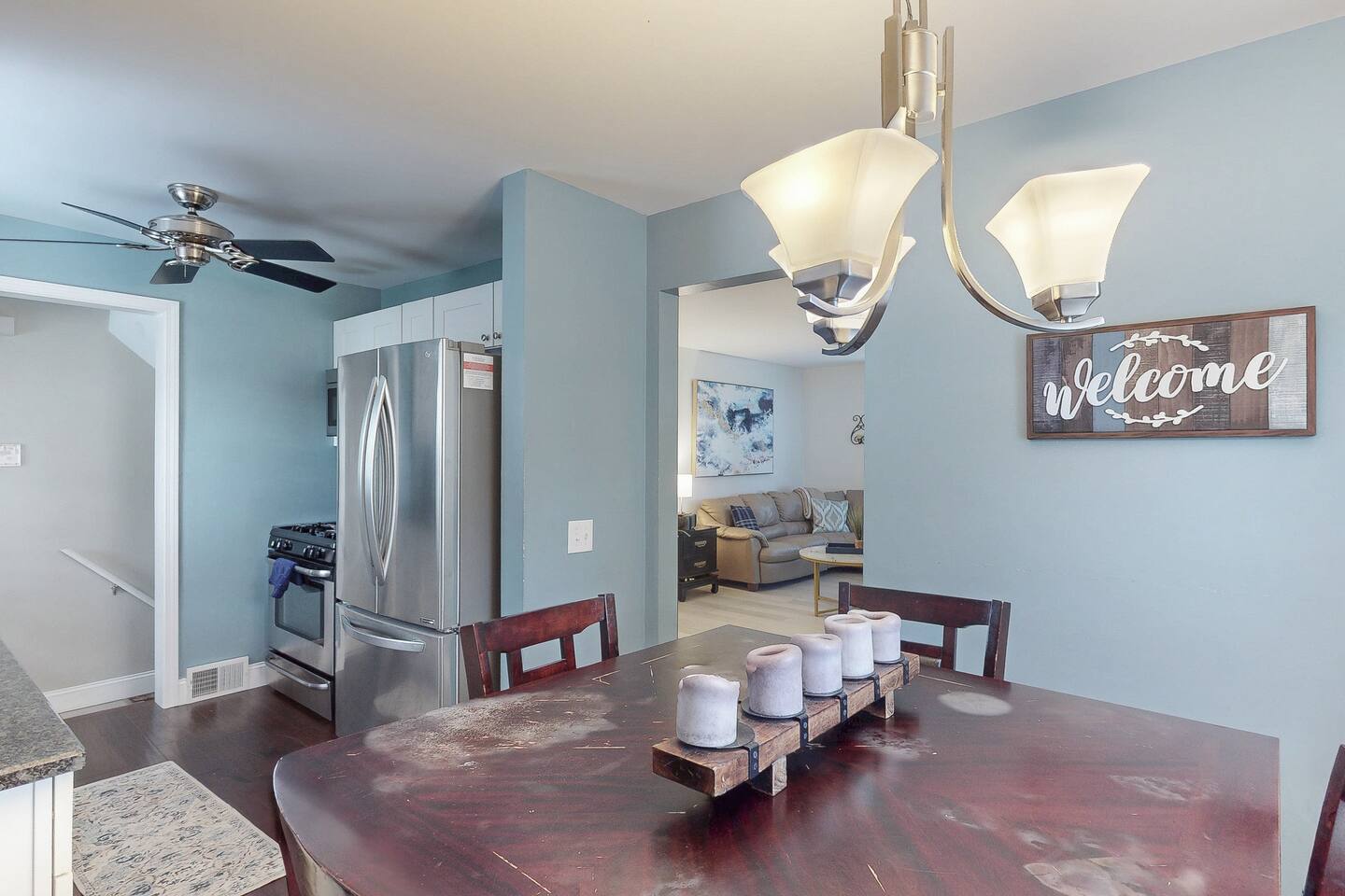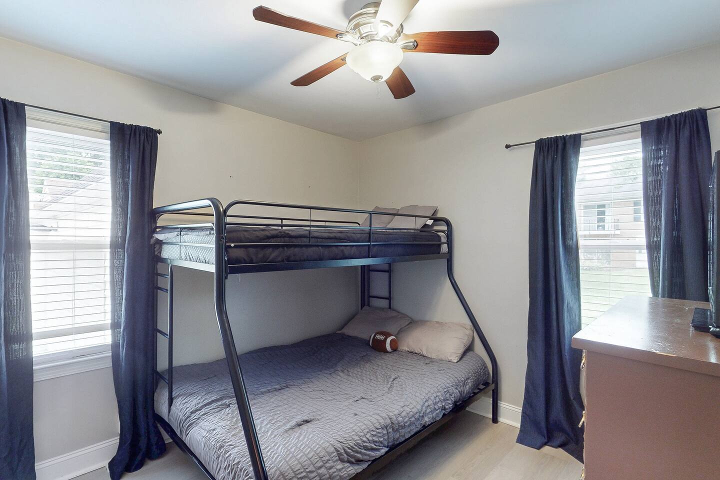 Kick off your Canton adventure at The Canton Kickoff—a comfortable and family-friendly home just minutes from the Pro Football Hall of Fame and HOF Village! With space to sleep 8, two cozy living areas, and even a home gym, this home is ideal for game day weekends, family trips, or group getaways. Main Floor Comforts: Unwind in the inviting living room with seating for 6 and a smart TV—perfect for movie nights or post-exploring relaxation. The adjacent kitchen is fully equipped with everything you need for a comfortable stay, including a stove, oven, microwave, fridge, freezer, dishwasher, Keurig, toaster, and seating for 4. Whether you’re cooking up a quick breakfast or a full dinner, you’ll have all the essentials at your fingertips. Bedrooms & Bath: • Bedroom 1 (Main Floor): Queen bed, smart TV, dresser, and closet • Bedroom 2 (Main Floor): Twin-over-full bunk bed, smart TV, dresser, and closet • Bedroom 3 (Upstairs): Queen bed with built-in dresser drawers • Bedroom 4 (Basement): Queen bed in a shared space with the lower-level living room • Bathroom: Full bath with tub/shower combo—perfect for families with little ones Lower-Level Lounge & Fitness Area: The finished basement is a standout feature, offering a second living space with seating for 6–8, a smart TV, and a full workout zone. Stay active during your stay with an elliptical, Gold’s Gym multi-workout bench, and a punching bag. The fourth queen bed is tucked in this shared area, making it great for guests who appreciate a little privacy or flexibility. Outdoor Features: Enjoy your morning coffee or evening wind-down on the covered front porch with comfortable seating. What We Love: • Just minutes from the Hall of Fame and local attractions • Great layout for families or friend groups • Home gym and two living areas for entertainment and flexibility • Sleeps 8 comfortably with 4 separate sleeping spaces Whether you’re here for football festivities or a relaxing Ohio escape, The Canton Kickoff is your home base for memory-making and comfort. Book your stay and let the countdown to fun begin!