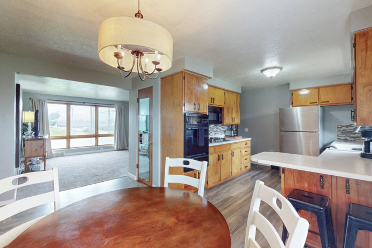 Welcome to The Halftime Highlight—your perfect Canton home base just minutes from the Pro Football Hall of Fame! Whether you’re in town for a weekend of football, a family visit, or a local event, this inviting home offers comfort, convenience, and plenty of space for up to 8 guests. Main Living Areas: The cozy living room offers seating for 5–6 and a smart TV for movie nights or game-day viewing. Just off the living room, the kitchen includes everything you need for home-cooked meals: oven, gas stove, microwave, fridge, coffee pot, toaster, and seating for 6 at the dining table. Bedrooms & Baths: • Bedroom 1: Queen bed • Bedroom 2: Queen bed • Bedroom 3: Queen bed • Bedroom 4 (Basement): Queen bed with TV in a shared space with a second living area • Main Floor Bathroom: Full with tub/shower combo Each bed features fresh linens and cozy touches to help you rest and recharge. Sunroom Retreat: Enjoy your morning coffee or a quiet evening in the sunroom, which features seating for 4 and lots of natural light—perfect for unwinding or catching up with friends and family. What We Love: • Just minutes from HOF Village & local dining • Two full bathrooms for added convenience • Sunroom + two living areas for relaxing and gathering • Sleeps 8 across four queen beds Whether you’re cheering on your team or enjoying a relaxing escape, The Halftime Highlight is the perfect spot to refresh, recharge, and make memories in the heart of Canton!